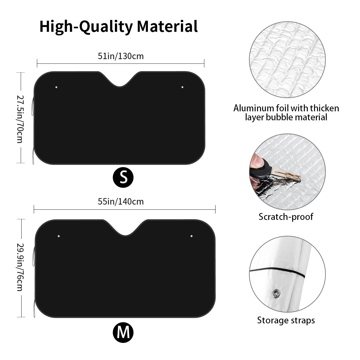 适用场景:130*70cm和140*76cm的尺寸,完美适用于大部分车型的前挡风玻璃