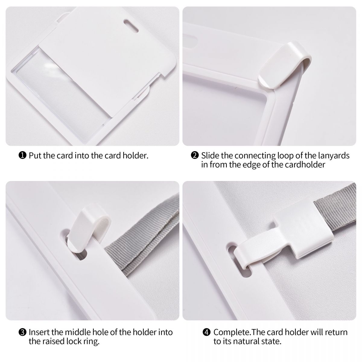 安装步骤:只需将工牌前后片往不同方向推开即可打开,放入ID卡以相对方向推进上下片即可。
