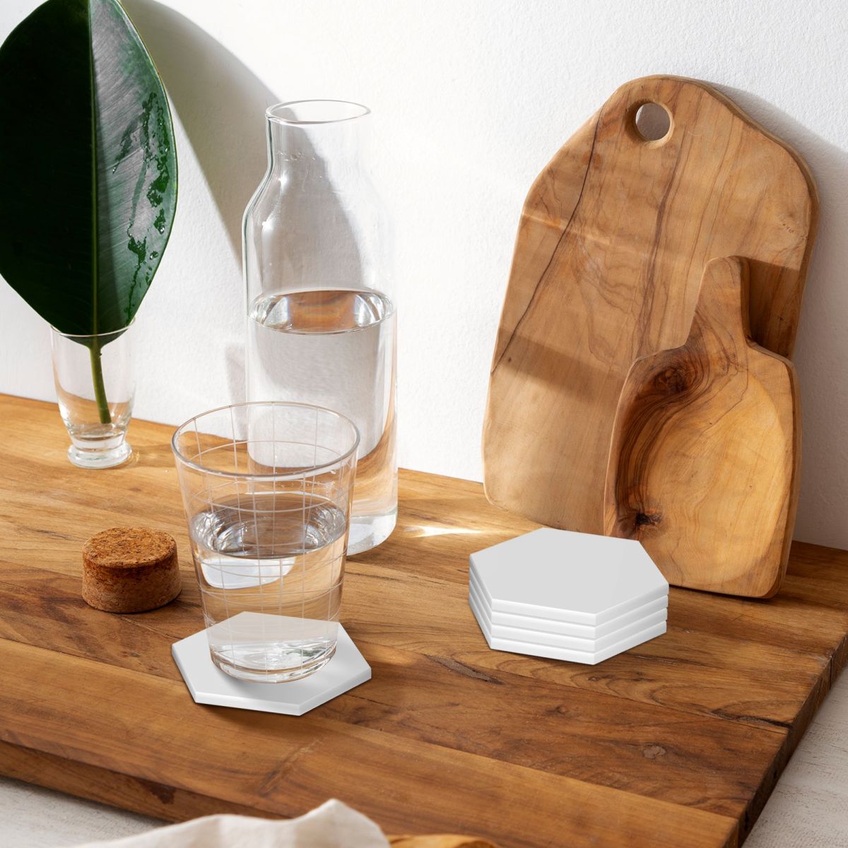 配件构造:包含4个软木底陶瓷杯垫。圆形:10.3*10.3cm 方形:10*10cm 六边形:11*9.5cm