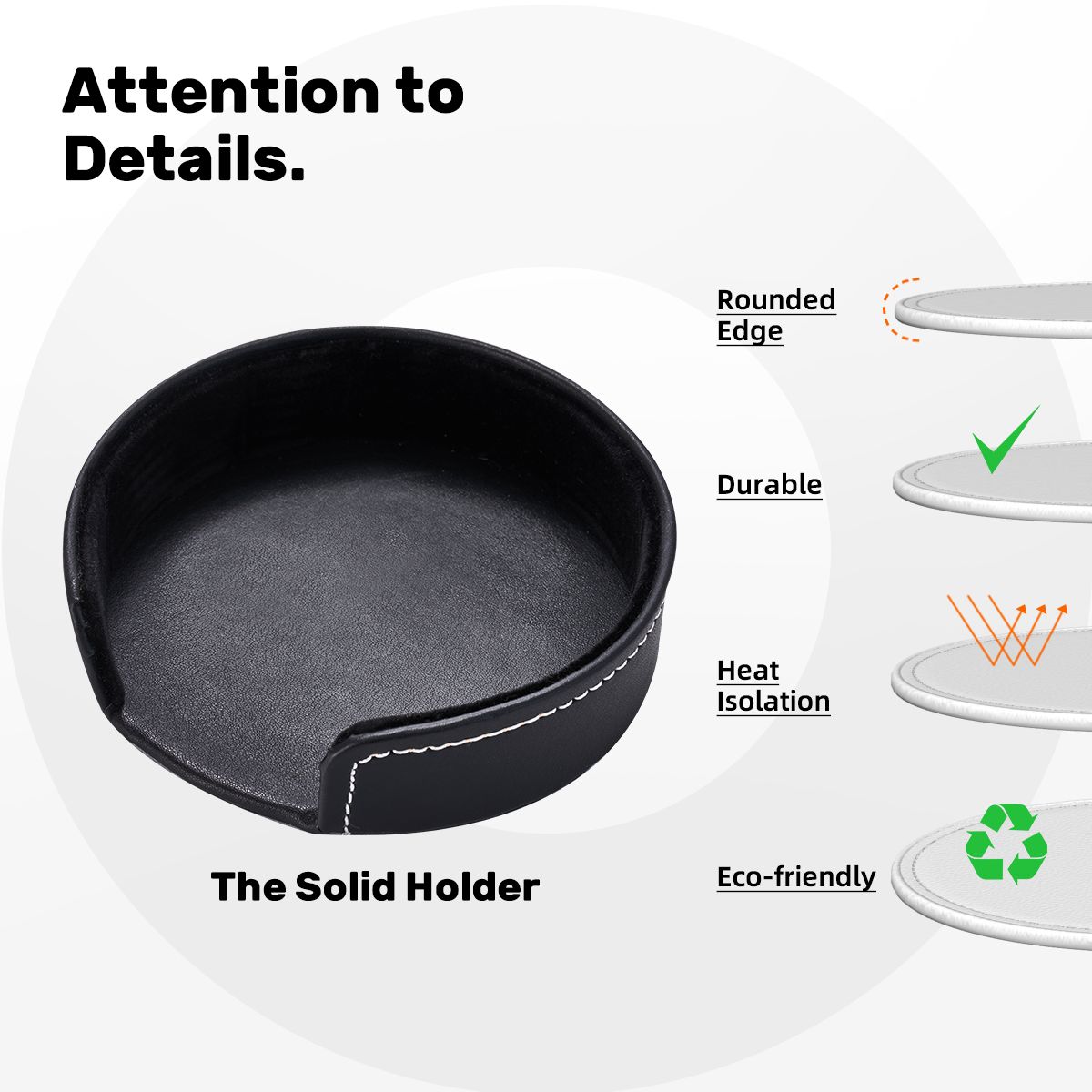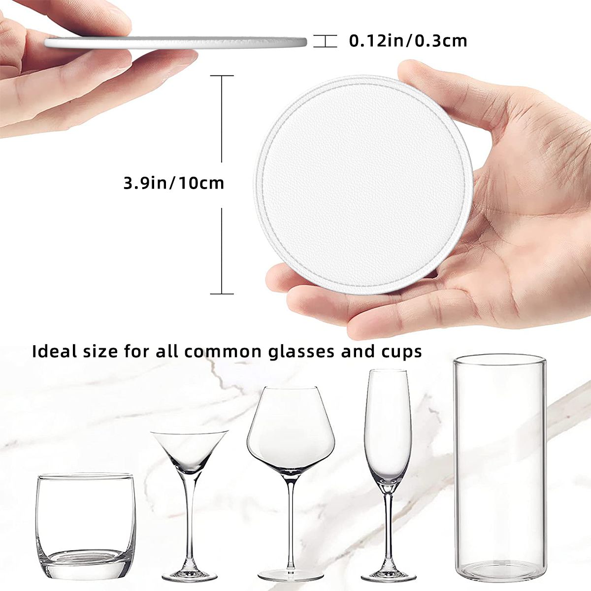 配件构造:包含6片直径10cm的皮质杯垫,并配有一个皮质杯垫收纳盒