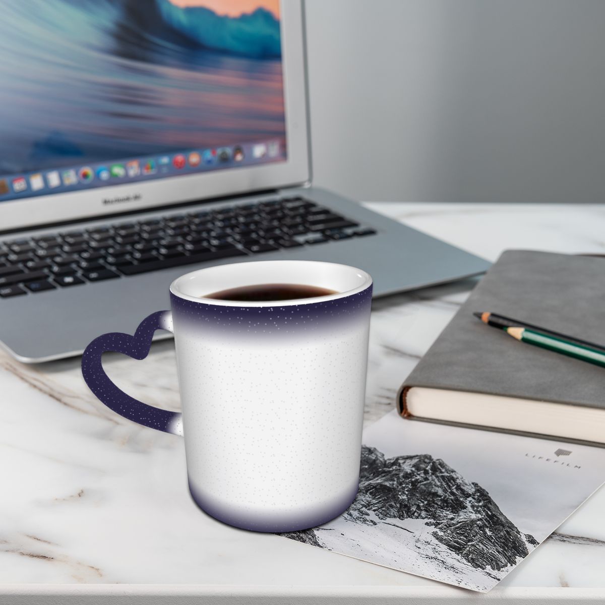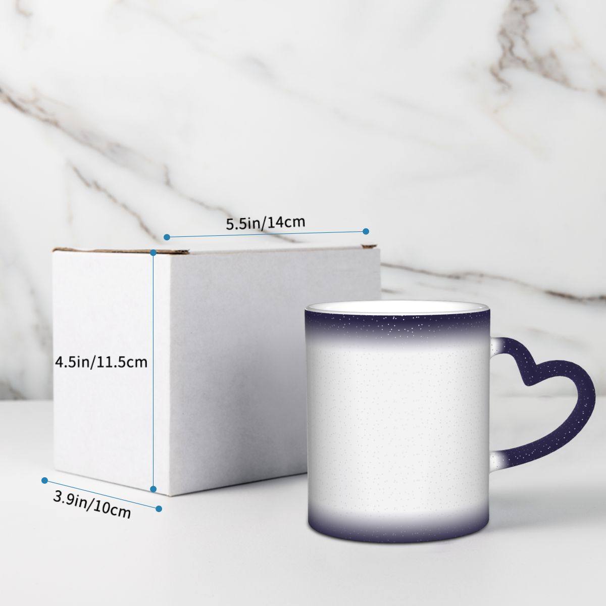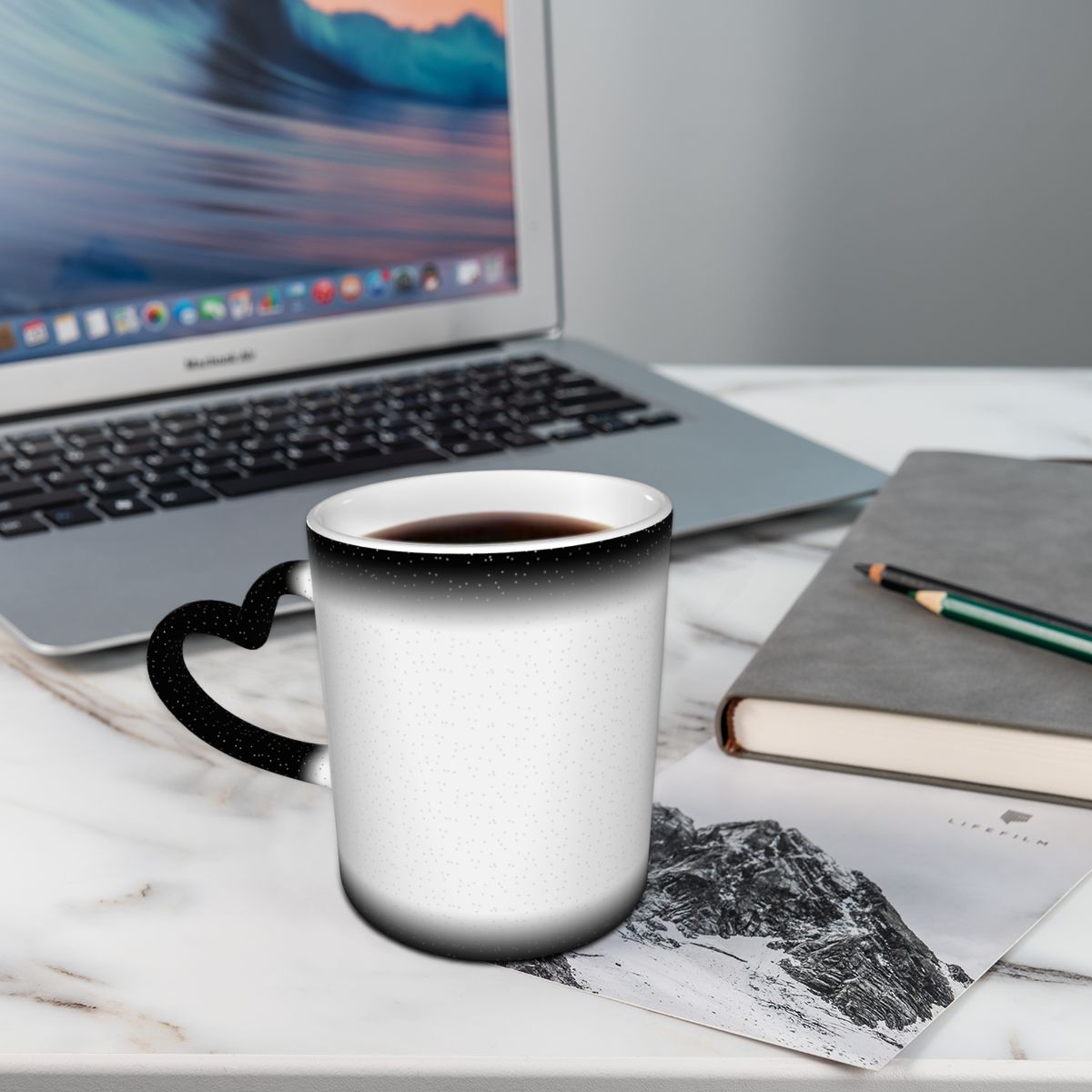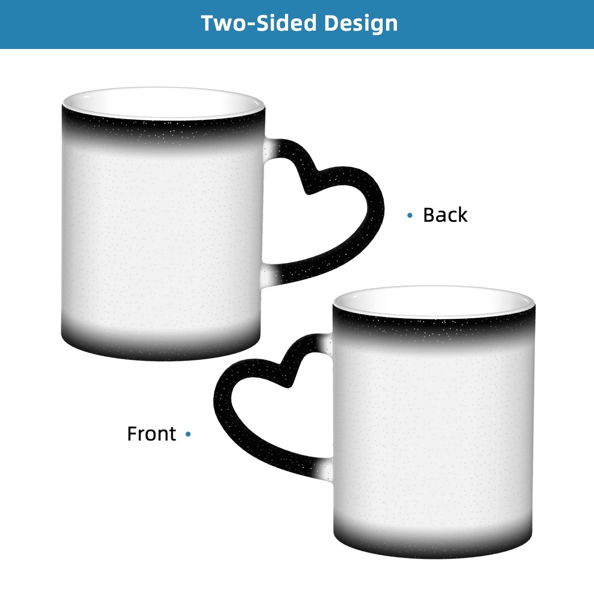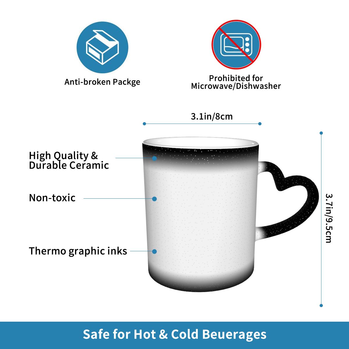 产品性能:冷杯呈黑色,倒入热液后会变成白色,出现打印图像,温度降下时又变回黑色。人性化设计、安全、放心使用,美观实用,环保材质。杯底加厚防滑设计。使用方便,便于存放,取用自如。杯身厚实,简约大方,健康无味,杯口细腻光滑,让你的口感更加回味无穷,独特的耳朵设计手握着舒适,陶瓷杯重量适中,坚固耐用,给您和您的家人带来更健康的生活。