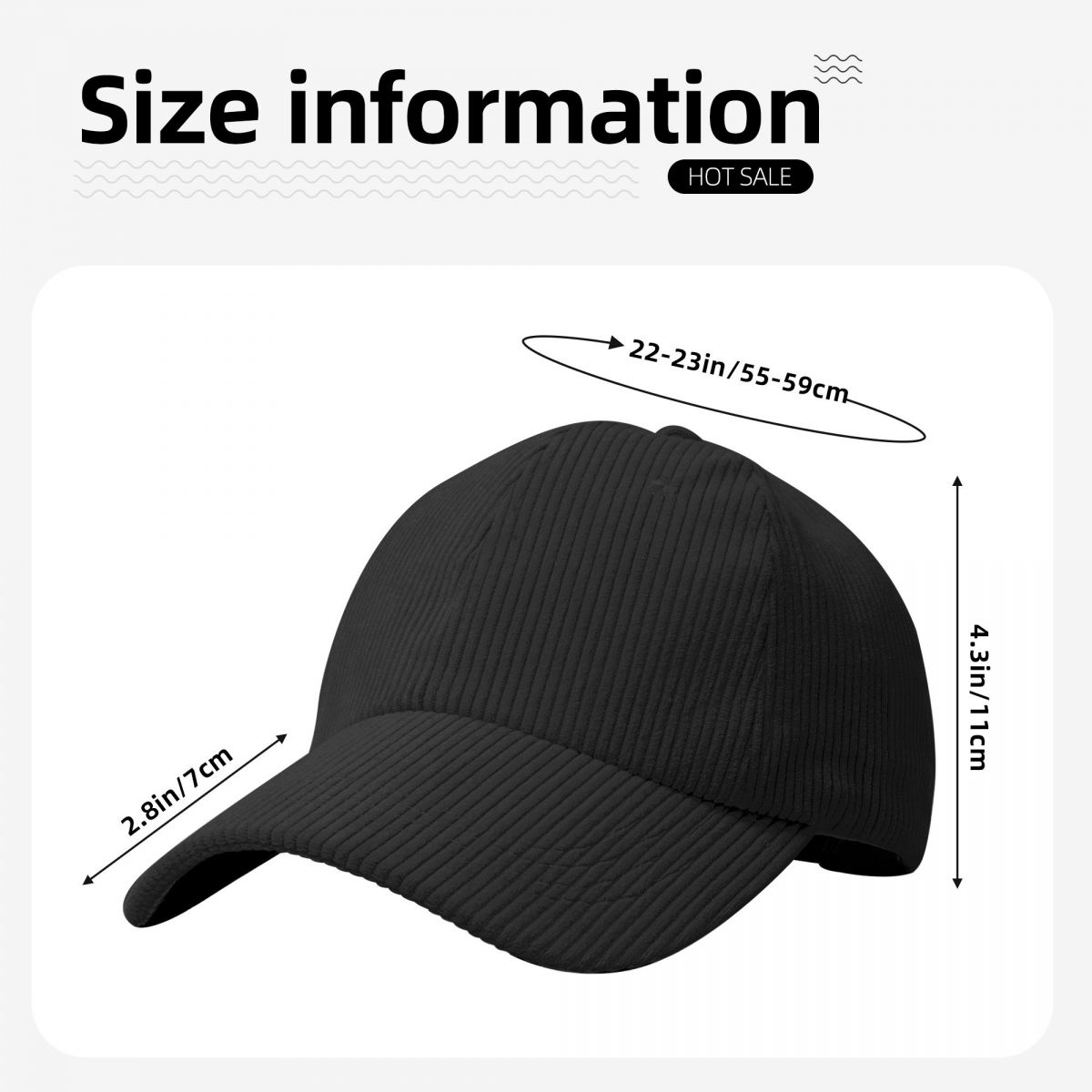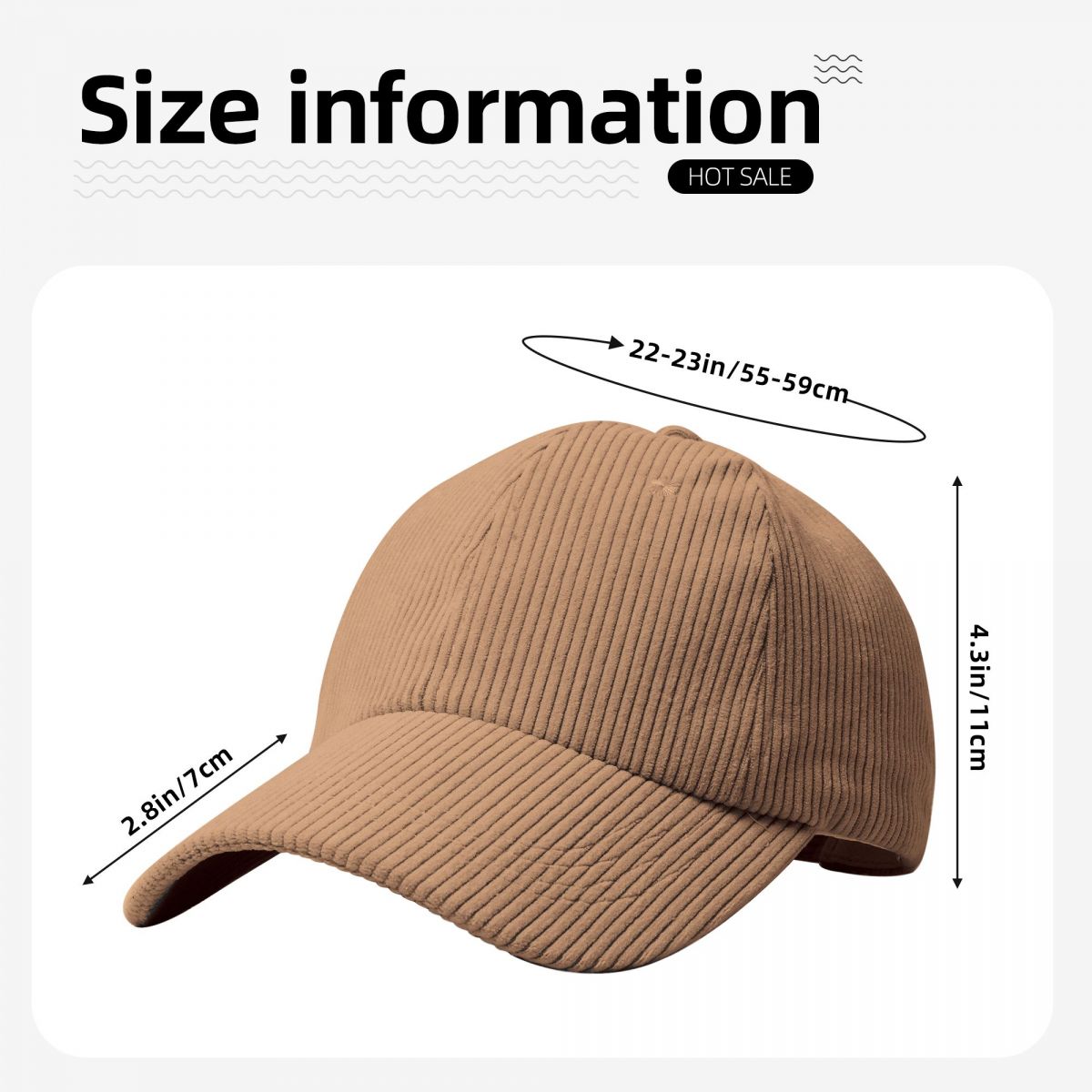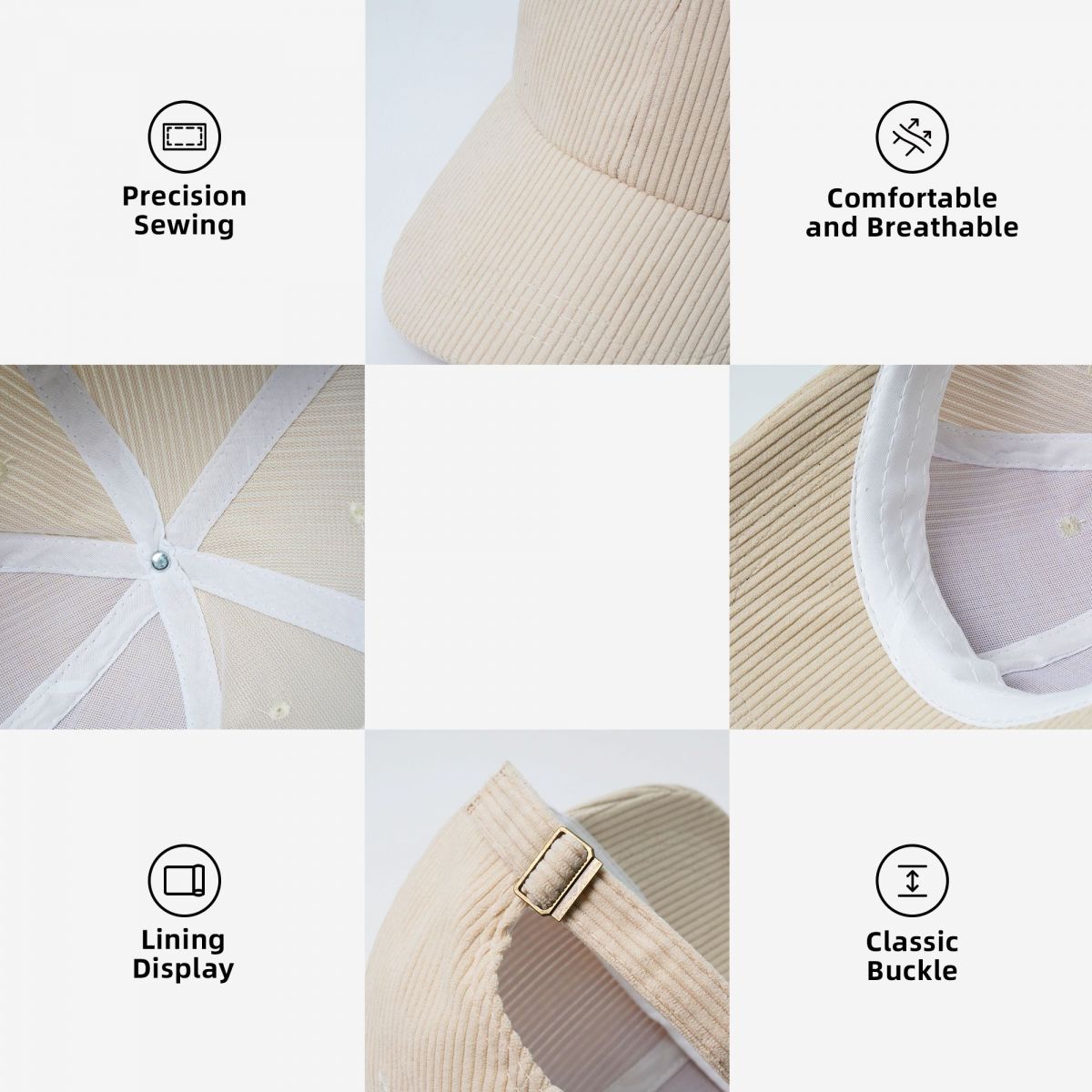产品性能:优质灯芯绒制成,休闲款式,弯檐设计,更加时尚、修饰脸型。内置的汗带可以吸收汗液,帽身6片结构,更贴合头部。帽身有绣花透气孔,透气不闷热,无论是遮阳还是装饰,都非常合适。