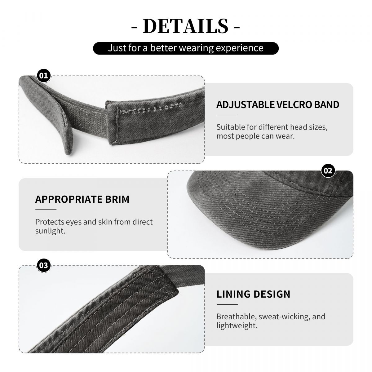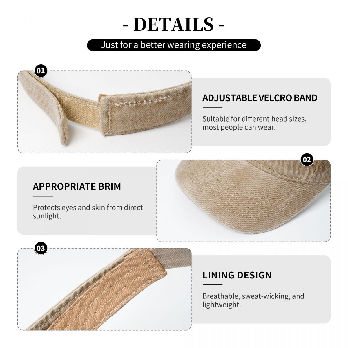 产品性能:采用优质水洗牛仔面料,轻质、有型。空顶设计,不闷热,也不影响发型。帽后是调节的魔术贴,适合大部分头围,戴着舒适不勒也不会掉。内层的汗带,能有效阻止汗珠滑落。帽檐是弯檐设计,不遮视线,修饰脸型,时尚百搭。