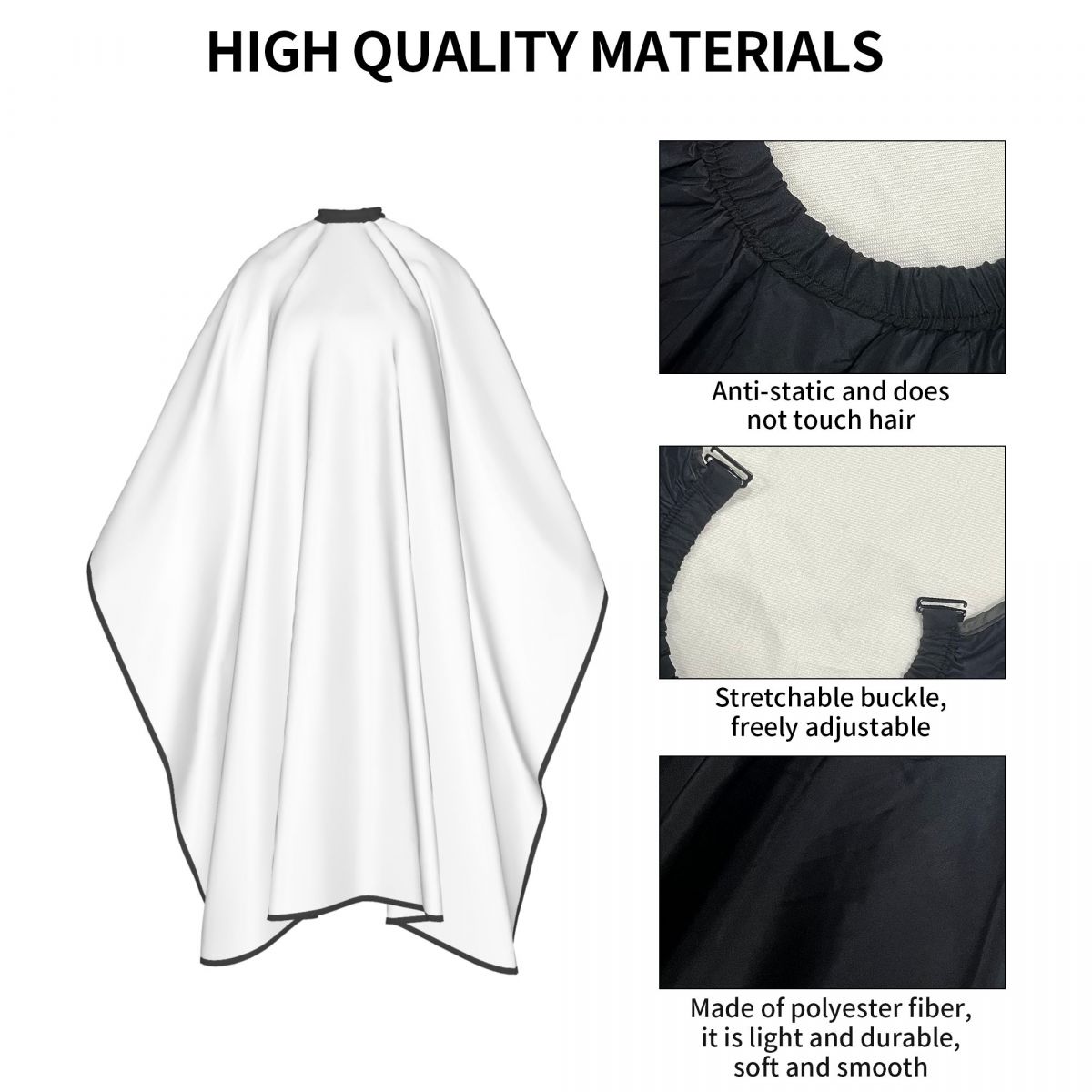 材质说明:这款成人理发围裙是由100%涤纶面料制成的。