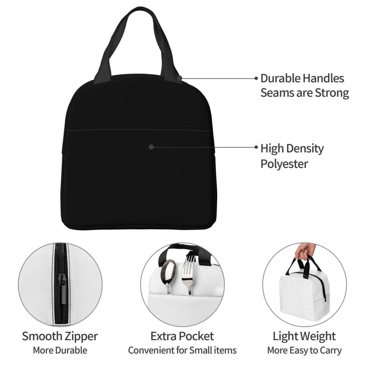材质说明:午餐袋采用高密度牛津布和厚铝箔制成。它可以让你的食物保持凉爽或温暖约4小时。它可以使你的食物新鲜和美味。用冰袋冷冻会更好,更新鲜。