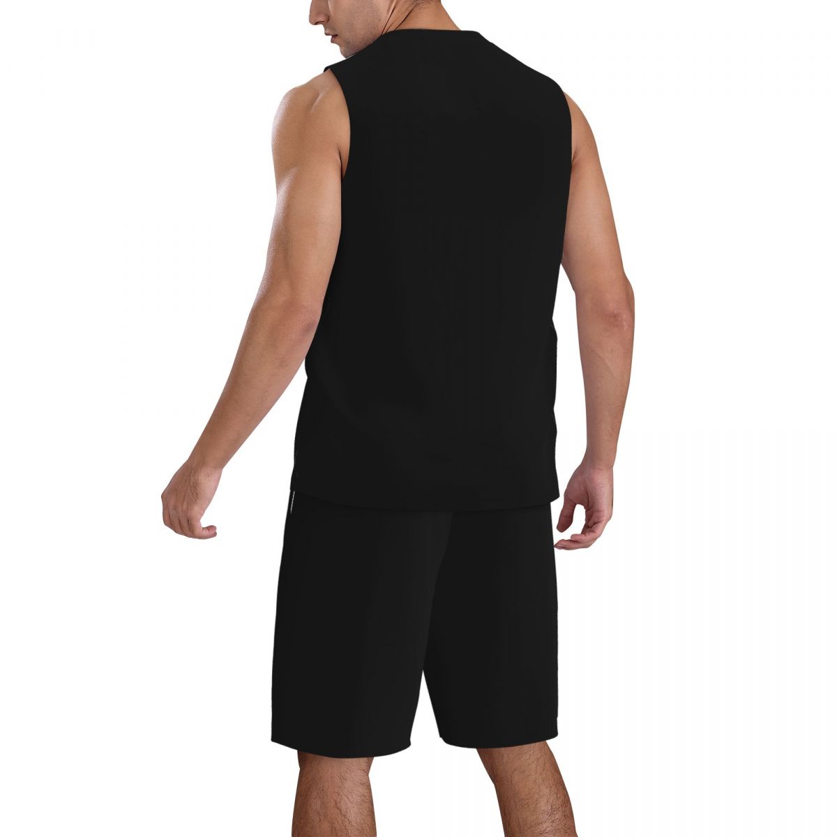 配件构造:包含一件上衣+一件裤子,上衣圆领、无袖,裤子松紧带+抽绳,两侧有插袋。