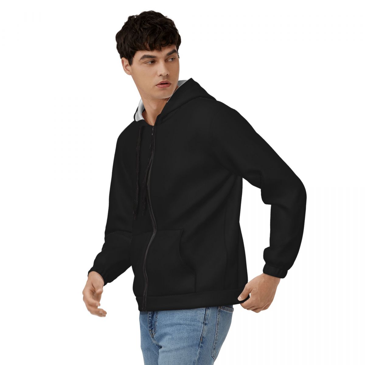 配件构造:长袖,前门襟拉链,帽子带帽绳,左右两侧有口袋。