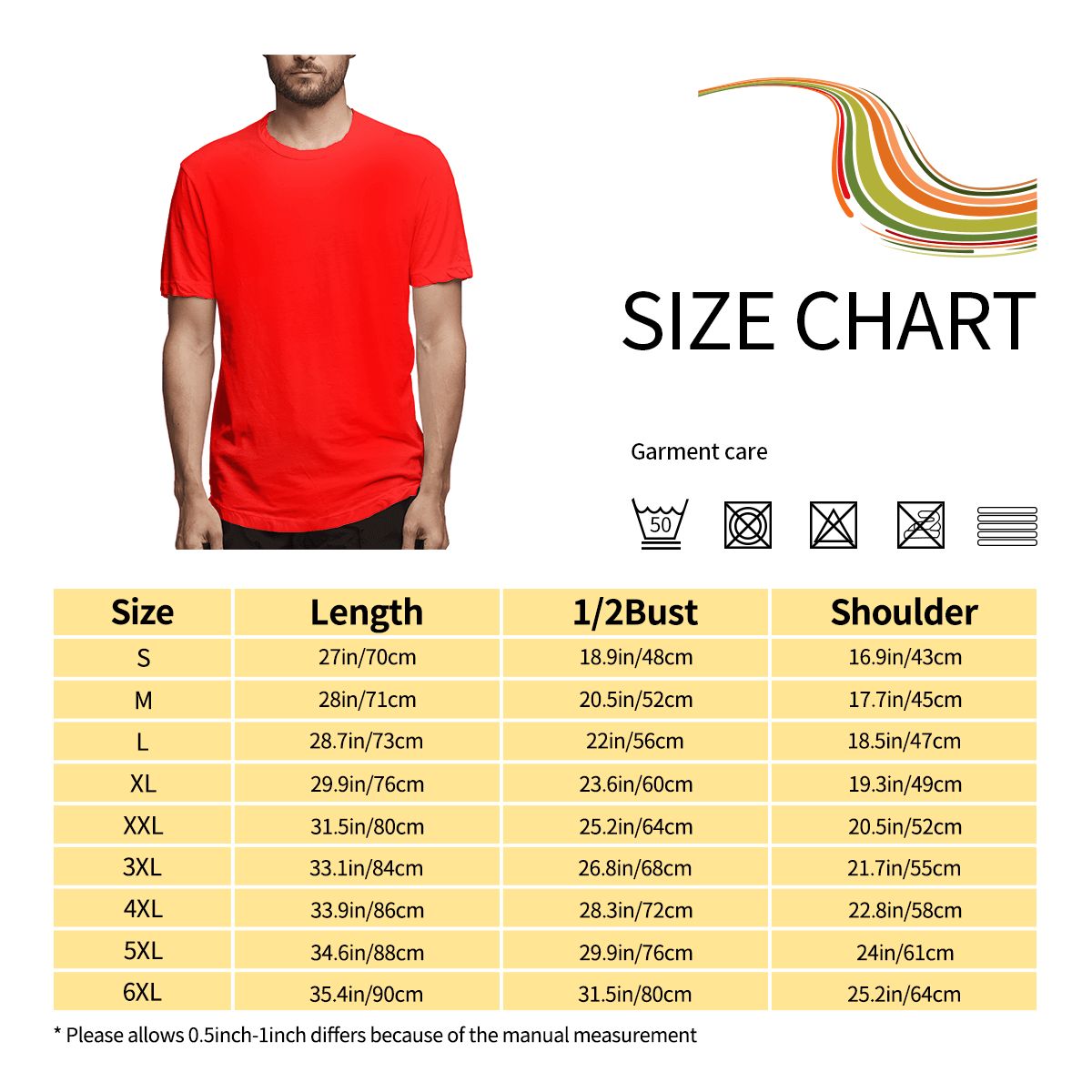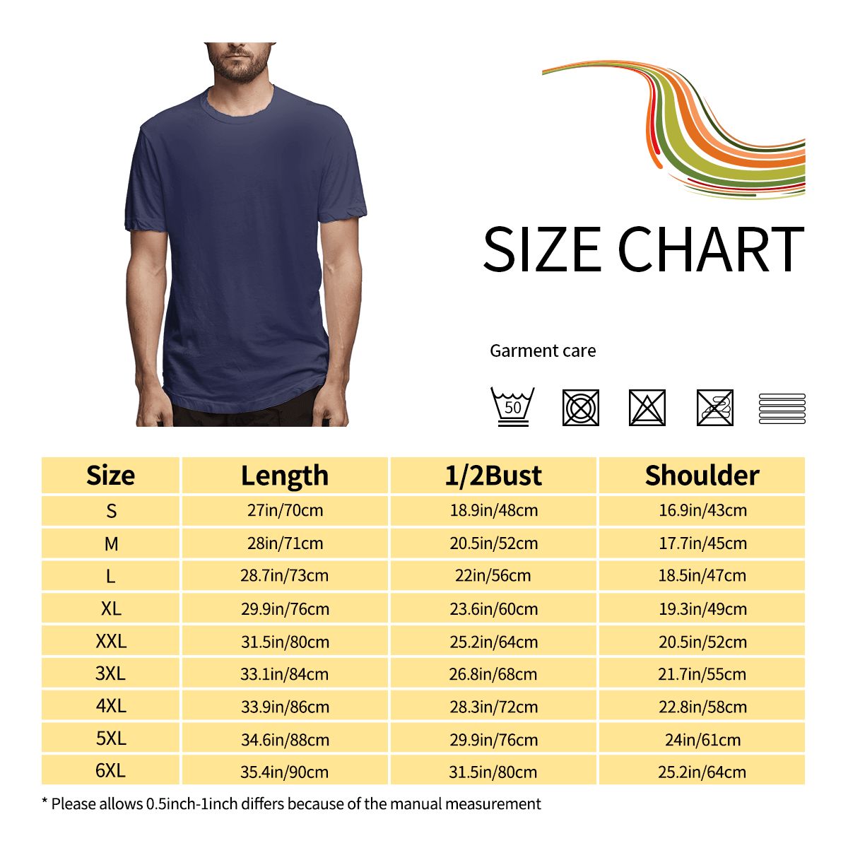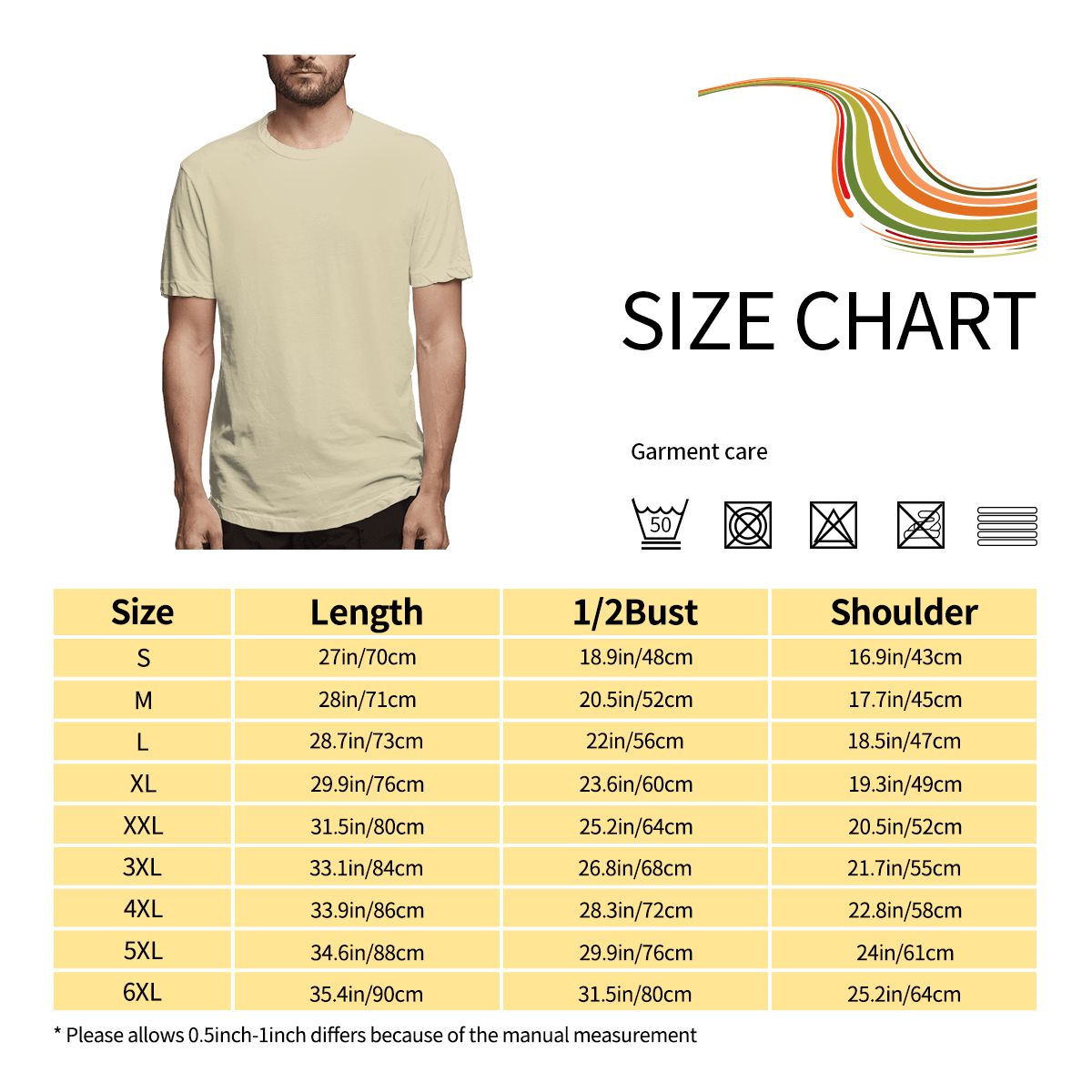 特别说明:此尺码数据在衣服平铺下测量所得,平铺测量胸围为1/2,因测量方法不同,误差在2-4cm内的属于正常现象