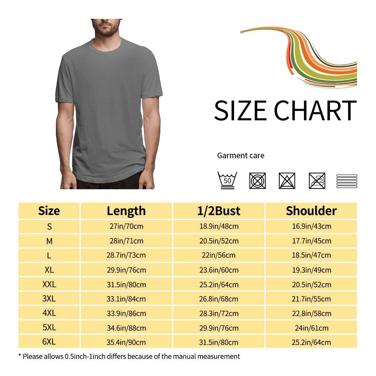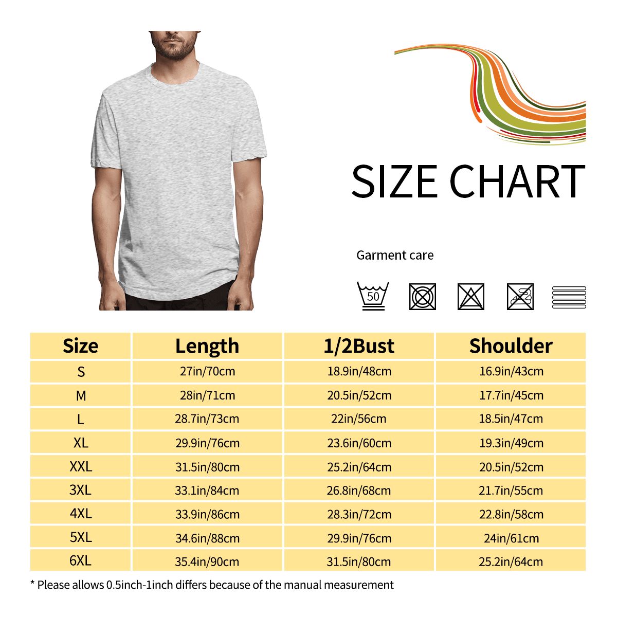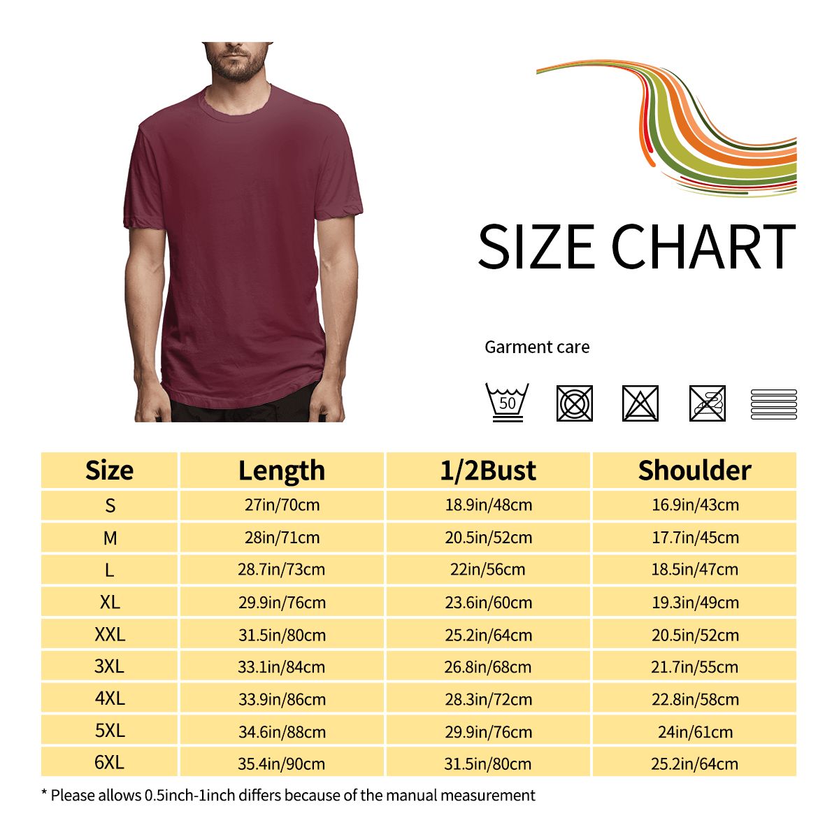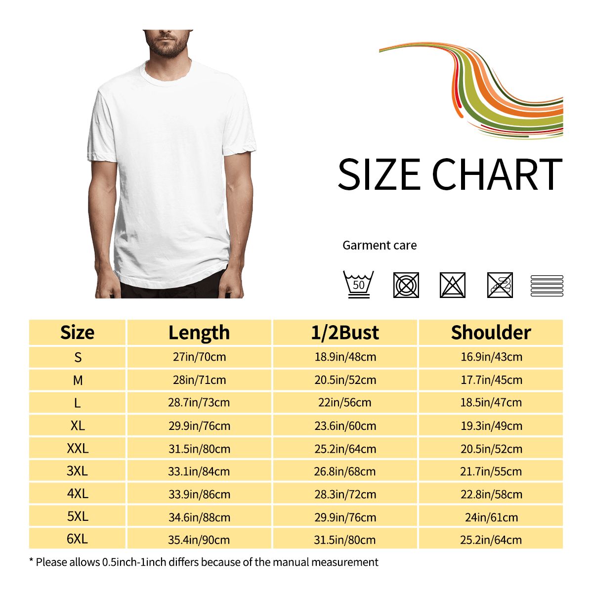 特别说明:此尺码数据在衣服平铺下测量所得,平铺测量胸围为1/2,因测量方法不同,误差在2-4cm内的属于正常现象