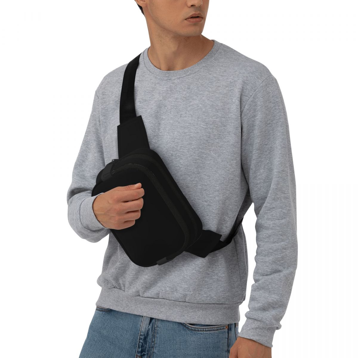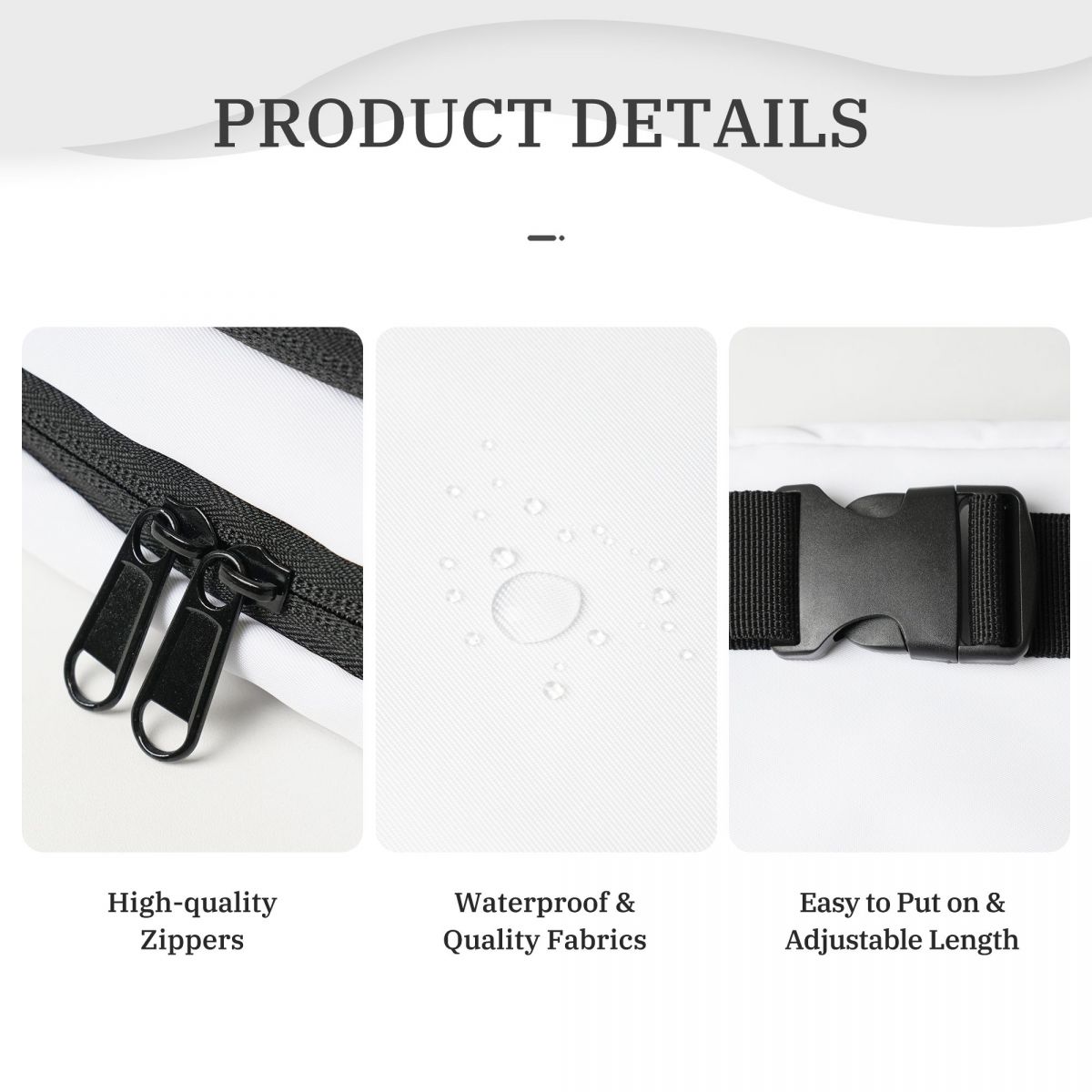 配件构造:一个主口袋,一个副口袋,主口袋内部有一个拉链隔层,腰围可调节范围56-145cm,黑色背带调节范围在21-108cm之间。