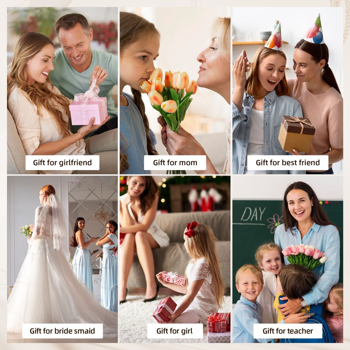 适用场景:不仅适合手镯、耳环、戒指、项链等日常珠宝收纳,也可用于婚礼、生日礼品及装饰。在情人节、母亲节、感恩节、圣诞节和结婚纪念日送给你的女朋友、爱人、母亲、女儿的最佳礼物。