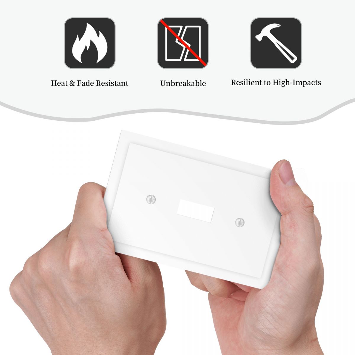 产品性能:由聚碳酸酯热塑性材料制成,提供耐用性、灵活性和弹性,可承受硬冲击和重力,这种高品质材料有助于延长壁板的使用寿命,使其几乎牢不可破。耐热和耐褪色,可承受100℃的温度,防止长时间使用引起的变色、褪色。标准尺寸易于安装于壁格上,覆盖更多墙壁瑕疵,这使得它们可以轻松装饰任何标准插座。