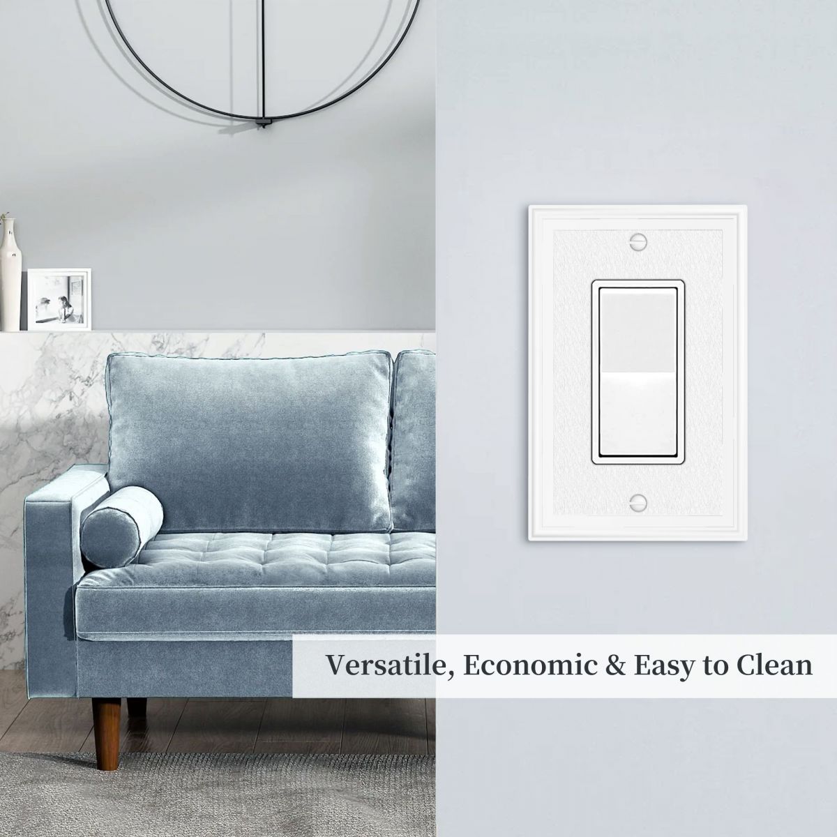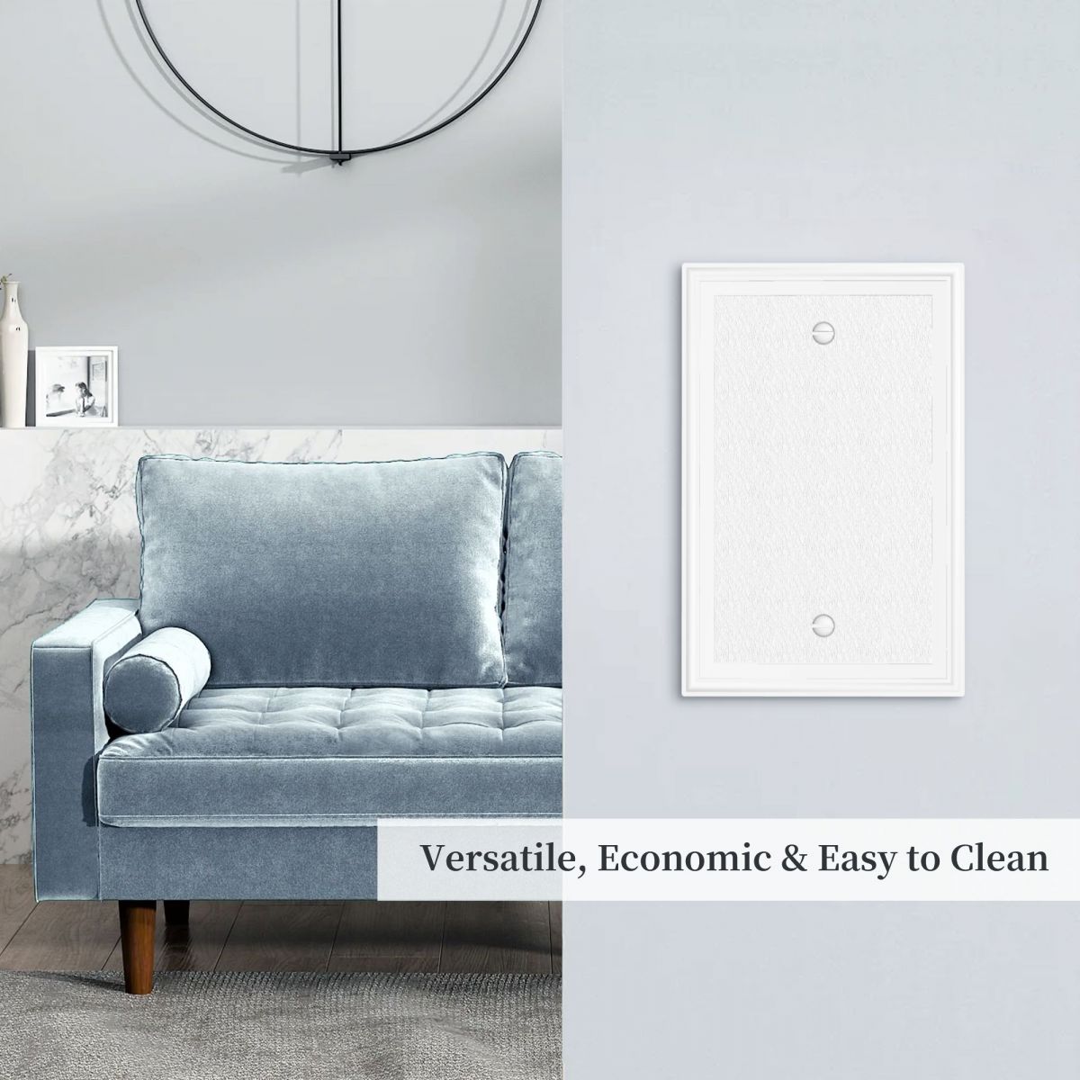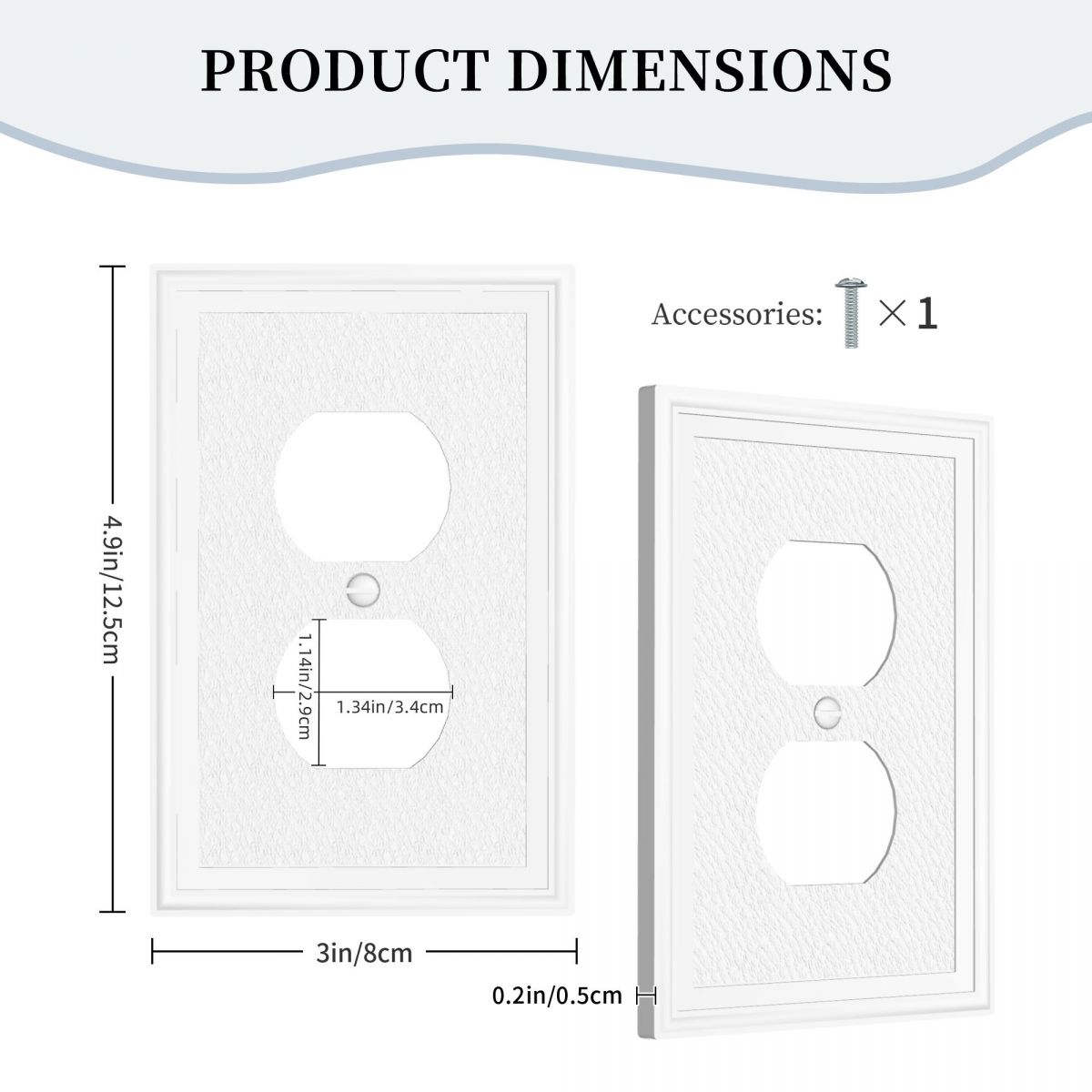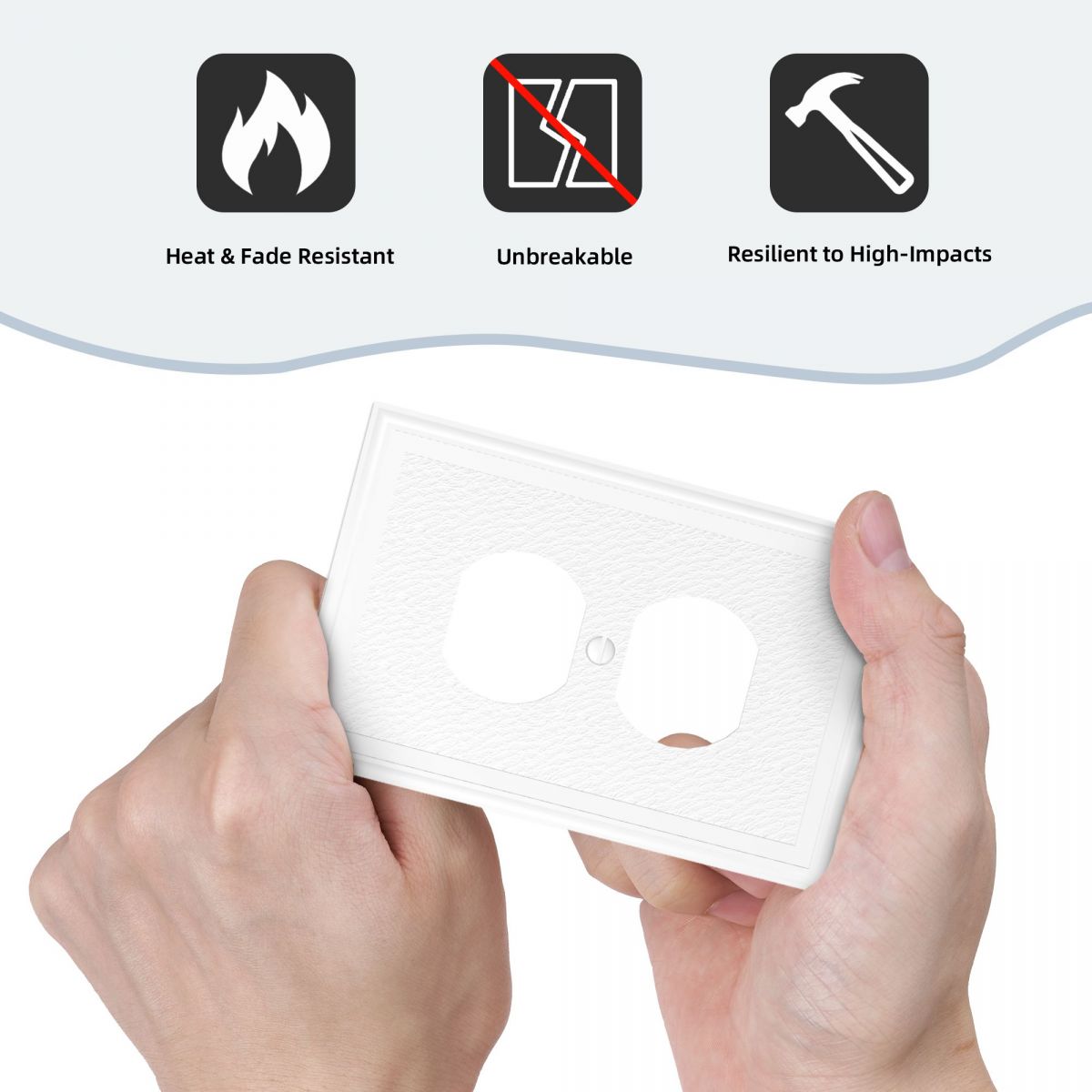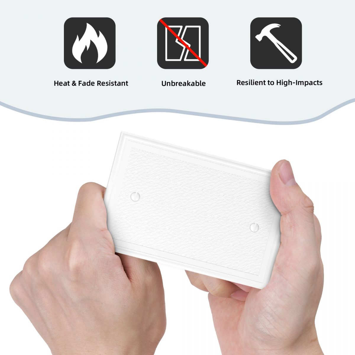 产品性能:由聚碳酸酯热塑性材料制成,提供耐用性、灵活性和弹性,可承受硬冲击和重力,这种高品质材料有助于延长壁板的使用寿命,使其几乎牢不可破。表面皮纹,看起来更加有质感,边缘线条装饰,别具风格,其次是耐热和耐褪色,可承受100℃的温度,防止长时间使用引起的变色、褪色。标准尺寸易于安装于壁格上,覆盖更多墙壁瑕疵,这使得它们可以轻松装饰任何标准插座。