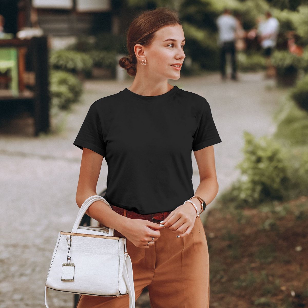 产品性能:T恤由优质仿棉制成,手感柔软舒适,亲肤透气,微弹,版型好穿又好搭,舒适又时尚,简约实用,不易缩水,耐穿,时尚潮流,无论是内搭还是外穿都合适